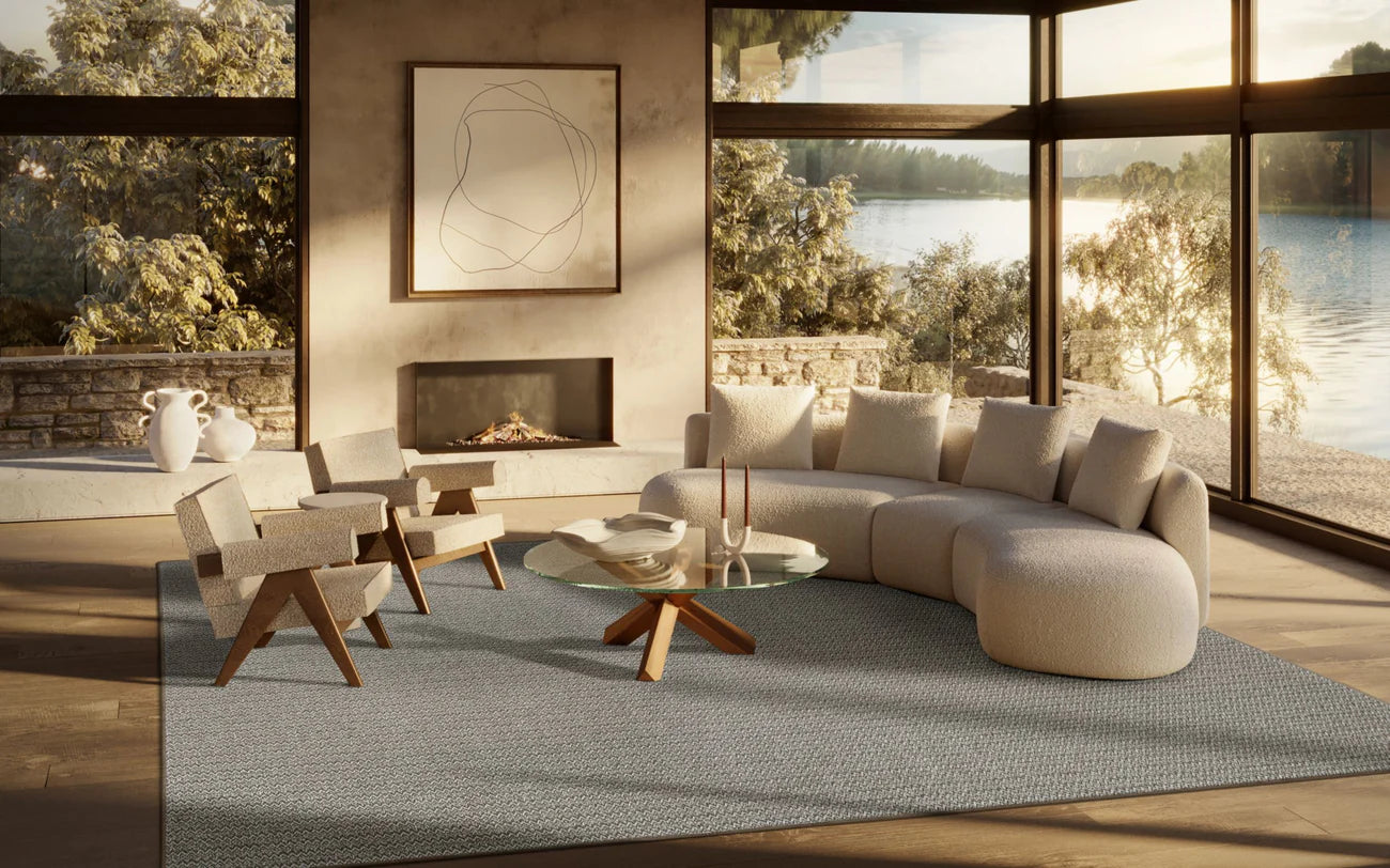 Manufactured in the USA and available in a 12'0" roll width, Arby supports efficient installation with fewer seams. The color palette—Caramel, Sky, Pepper, and Espresso—ranges from warm neutrals to rich, grounding tones, offering versatile design flexibility.